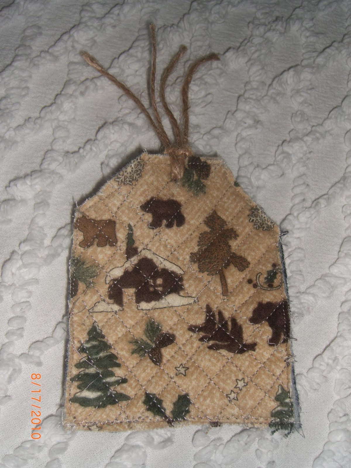 13. I love your tag, reminds me of the home in the mountains where my Son lives. So unique with the quilting. Thanks for coming by today, love to hear comments.