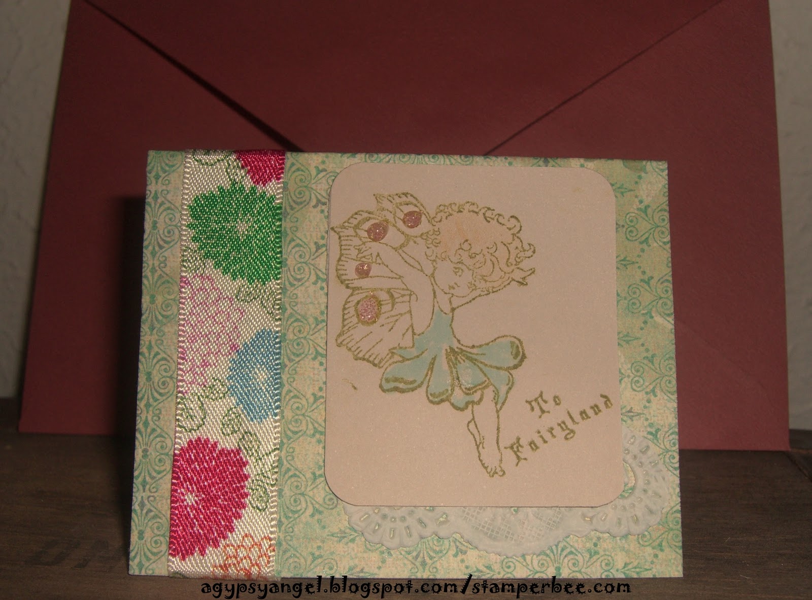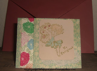 I made a mini card with a litte whimsy, take notice of the partial doilie, it is little hard to see in the photo.