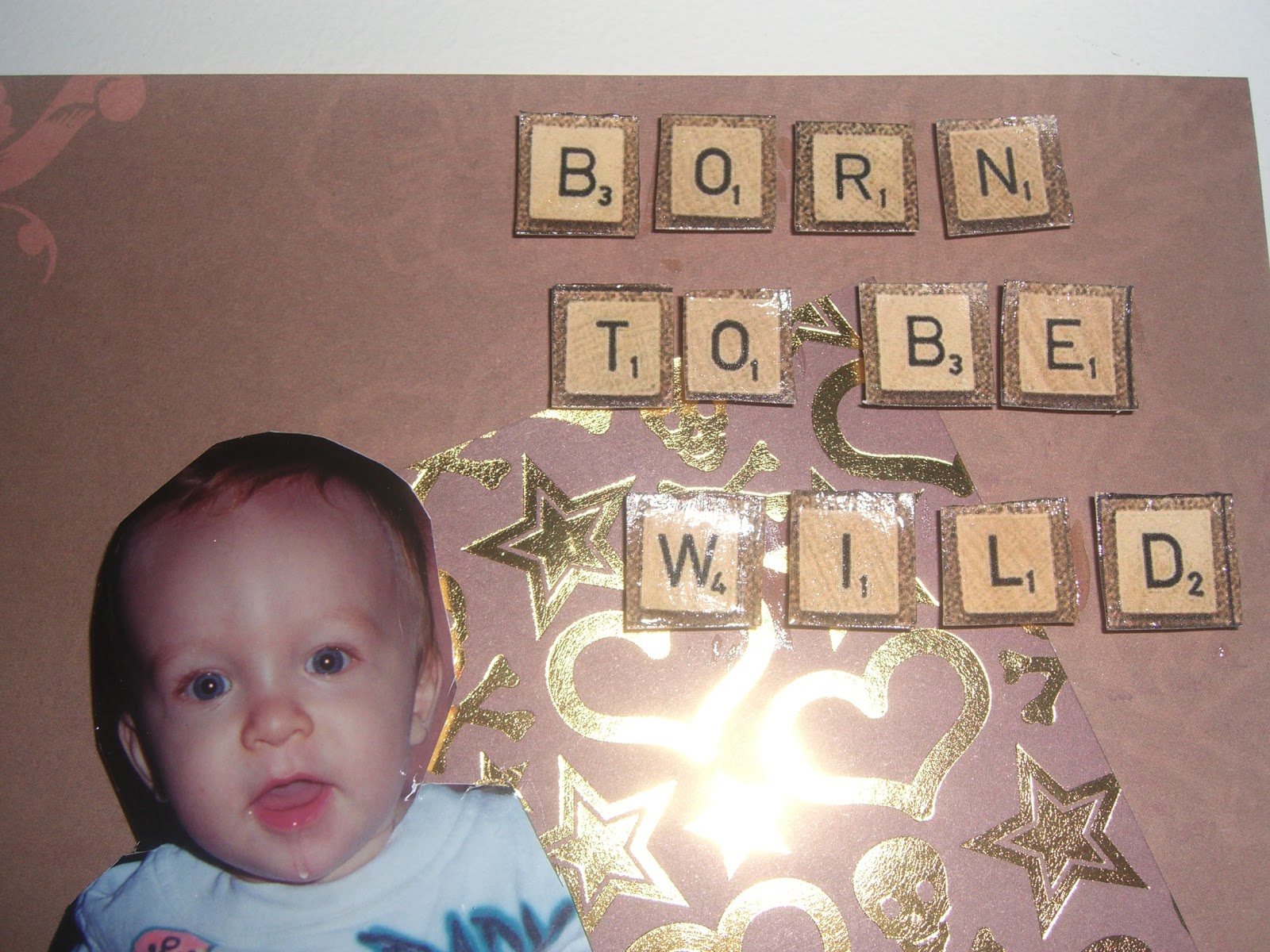This is a picture of my son before he could walk I think about 9-10 months old. At birth, he weighed 9 lbs 11 ozs so he was never a little baby. He has red hair and blue eyes like his mom. Here is a close up of the scrapbook letters: